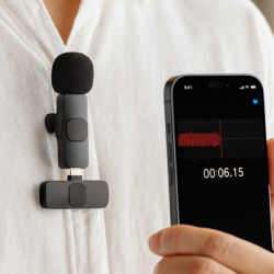 El Micrófono Corbatero es ideal para grabaciones claras y profesionales en entrevistas, videos, clases o transmisiones en vivo. Su diseño compacto permite colocarlo fácilmente en la ropa, captando la voz con gran nitidez.