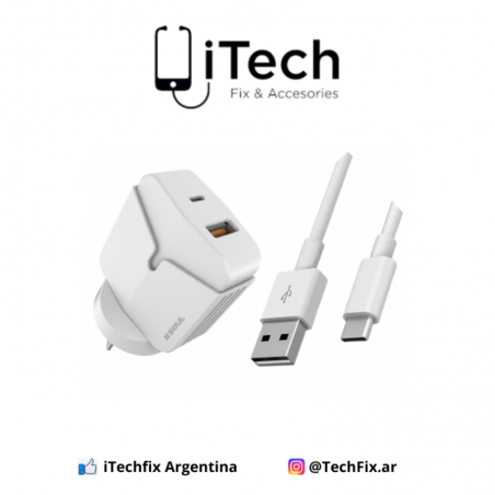 Cargador Tipo C + USB con Cable Tipo C