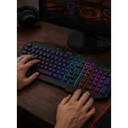 El Teclado Gamer LED Noga NKB-GK 3 combina diseño moderno, respuesta rápida y una iluminación vibrante ideal para cualquier setup gaming. Su estructura resistente y su conexión USB garantizan un uso estable, mientras que sus teclas de membrana ofrecen una experiencia cómoda y fluida durante largas sesiones de juego o trabajo.