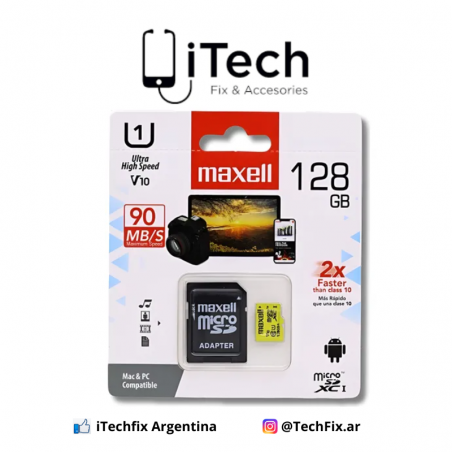 La memoria SD / Micro SD de 128 GB brinda amplio espacio para almacenar fotos, videos, música y documentos. Ideal para celulares, cámaras, tablets y otros dispositivos compatibles, ofrece un rendimiento estable y confiable para el uso diario.