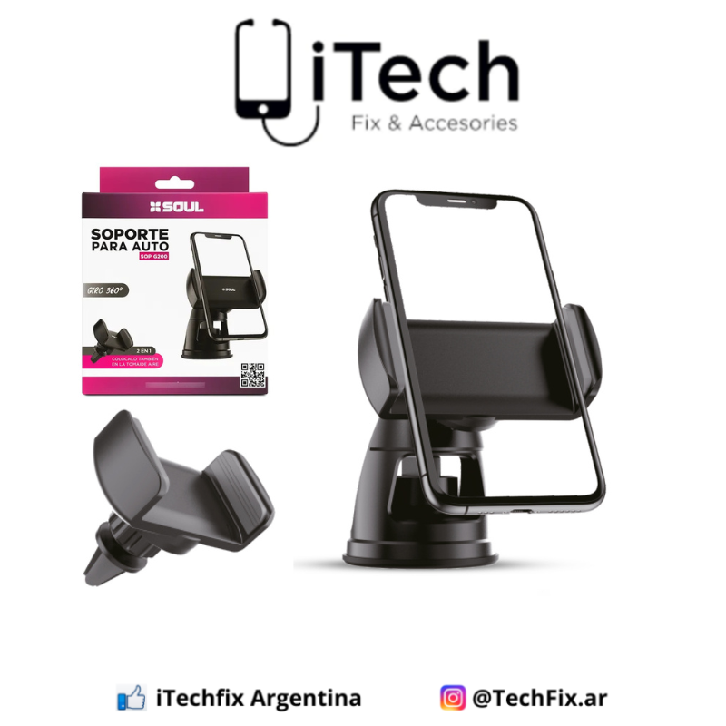 Imán de alta sujeción, brazo ajustable, compatible con la mayoría de smartphones, instalación simple y diseño compacto para no ocupar espacio en el tablero.