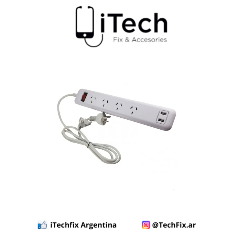 La zapatilla 4 tomas con 2 puertos USB es ideal para conectar y cargar múltiples dispositivos al mismo tiempo de forma segura y ordenada. Perfecta para hogar, oficina o espacios de trabajo.